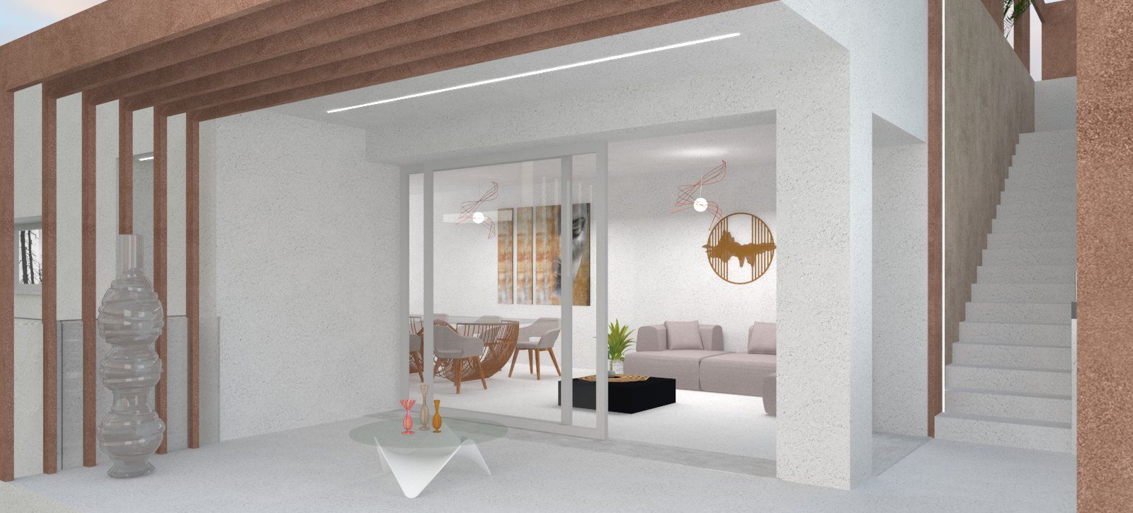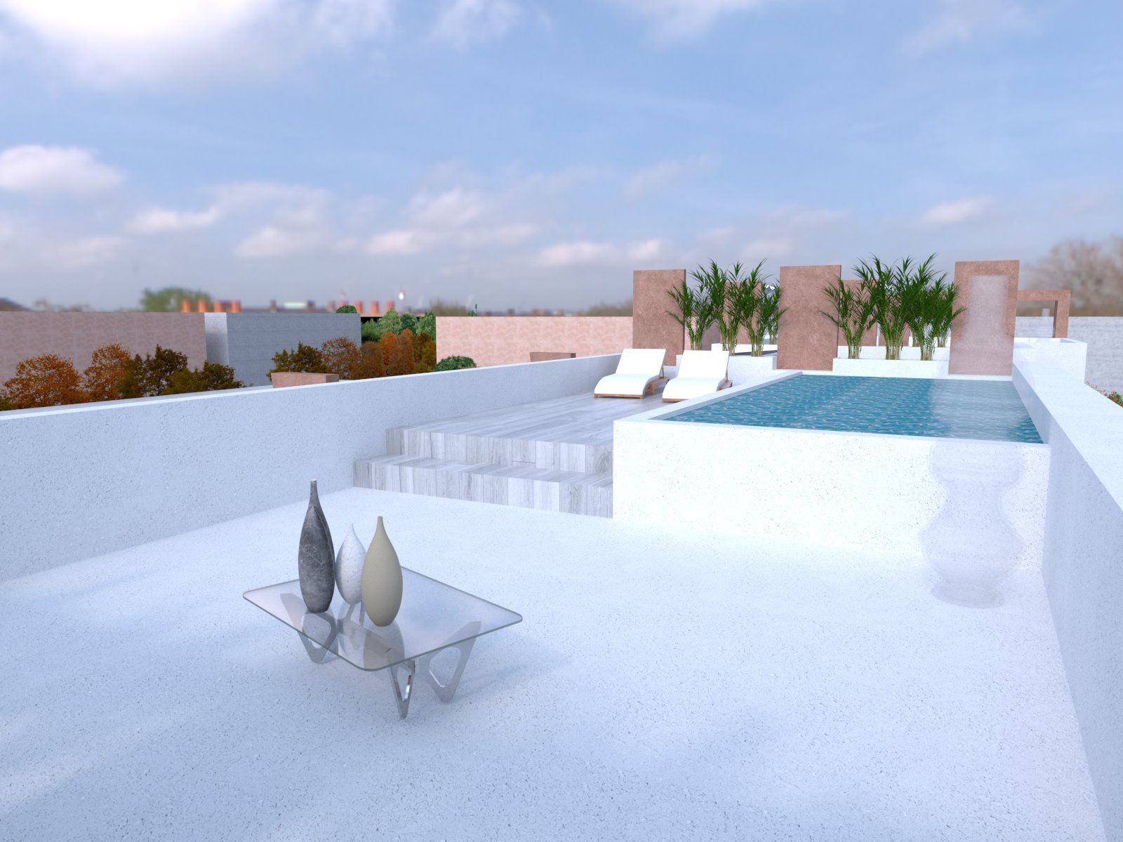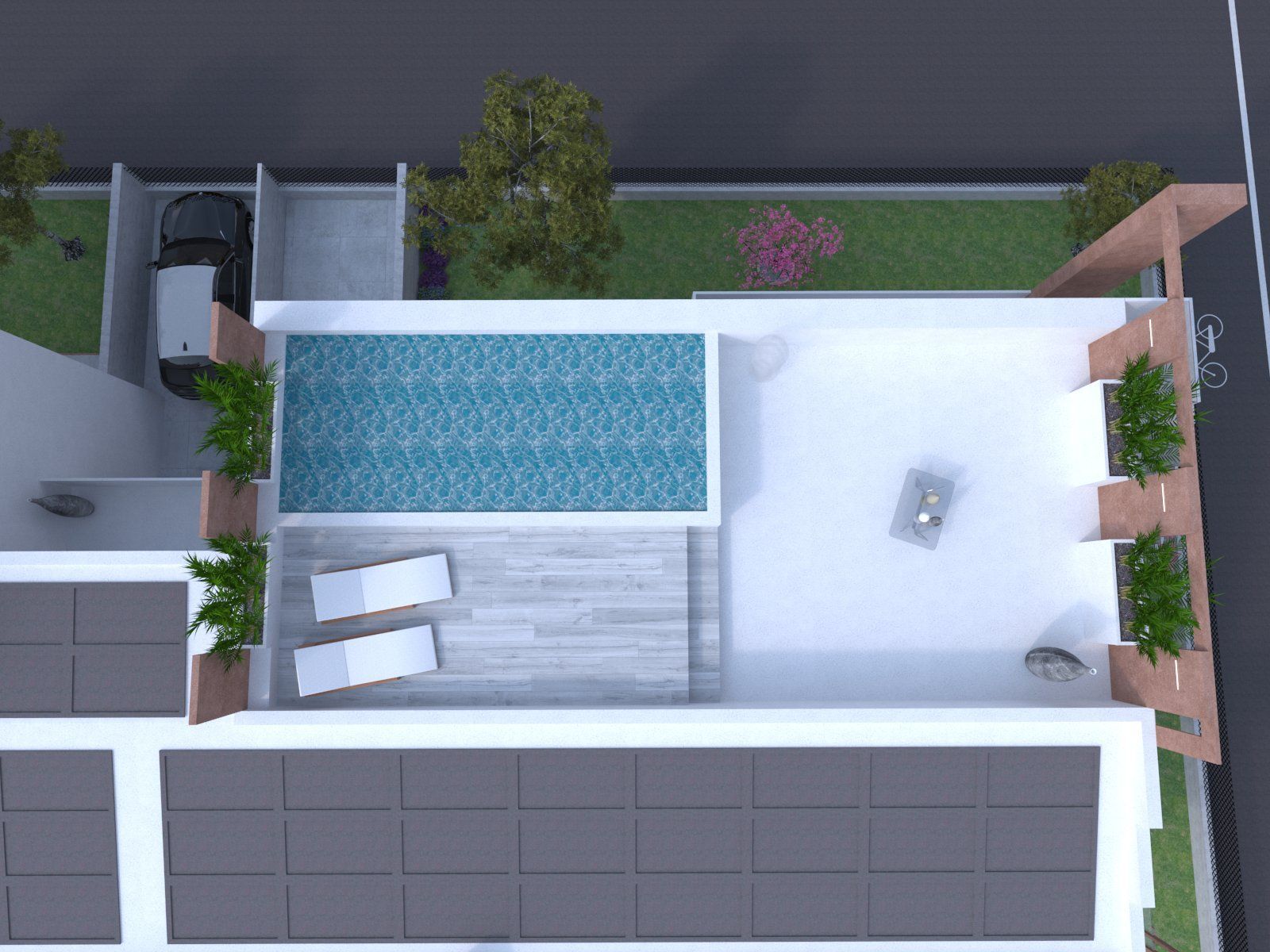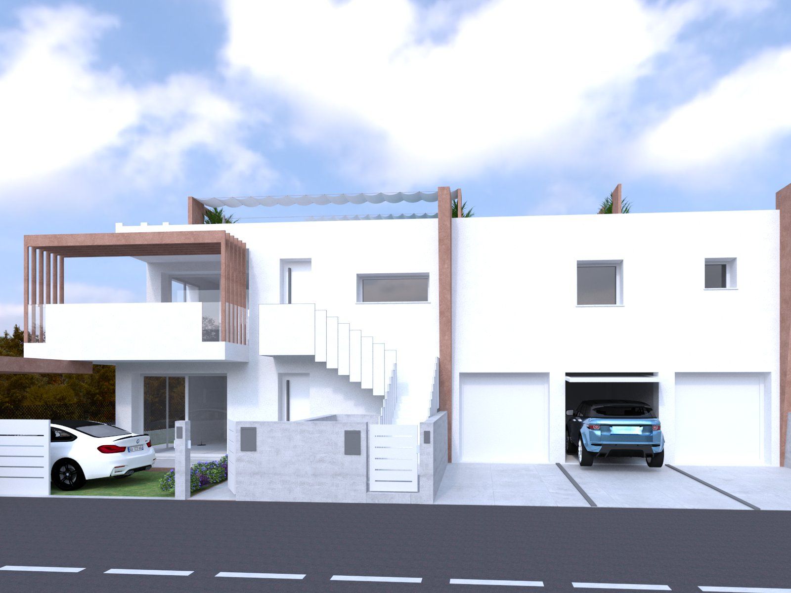 I 4 appartamenti di cui è composto l'edificio sono autonomi e hanno tutti accesso indipendente. I due al piano terra hanno ampio scoperto di proprietà, mentre i due al piano superiore hanno grandi terrazze e un solarium in copertura con possibilità di inserimento di una piscina.
